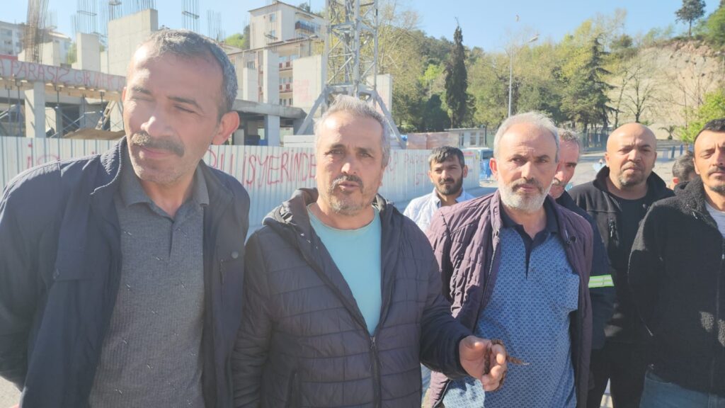 2023 yılının Temmuz ayından bu yana inşaatta çalıştıklarını söyleyen işçi Fikret Lafçı, maaşlarını gecikmeli aldıklarını son iki aydan bu yana da maaş alamadıklarını öne sürdü. Bayram öncesi çocuklarına alışveriş yapamadığını söyleyen Lafçı, “Biz 2023’ün 7 ayından beri burada çalışıyoruz. Yaz kış demeden bütün maaşlarımız hep aksamalı geldi. Ama artık bizimde gücümüz kalmadı. Son 2 aydır maaş alamıyoruz. Bize dediler ki ‘Cuma günü maaşınız yatacak.’ Dün maaş yatmadı, burada söz verildiği zaman gece 12’de bile paramızın yattığını biliyoruz. Bayram geldi, cebimde 20 TL para var. Ben bununla nasıl bayram yapayım. Emeğimizi istiyoruz. Çocuğumuza alışveriş yapacak paramız yok. Paramızı alamadık köyümüze gidemedik. Para peşine düştük. 8 aydır buradayız, hep aksadı. Ama 2 aydır hiç verilmiyor. Şantiye şefimiz bir gün öncesinden kaçtı gitti. Buraya masum birini bıraktılar, gittiler. Paramızı almadan buradan gitmeyi düşünmüyoruz” dedi.